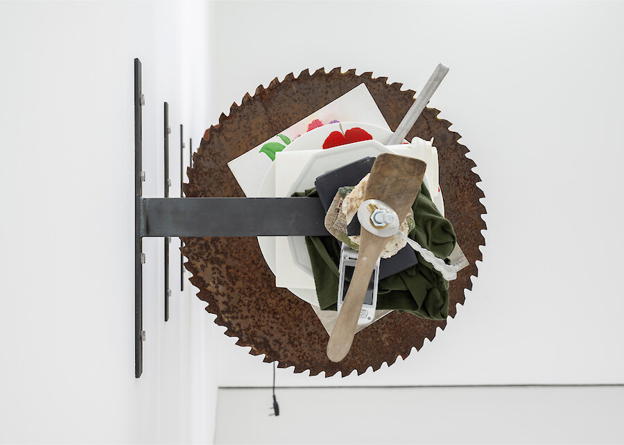 Personal effects and things that are biographical in amongst material that might be understood as generic without clear separation under compression (Kebab), 2024